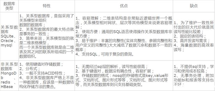 下方是关系型数据库和非关系型数据库的区别举例。