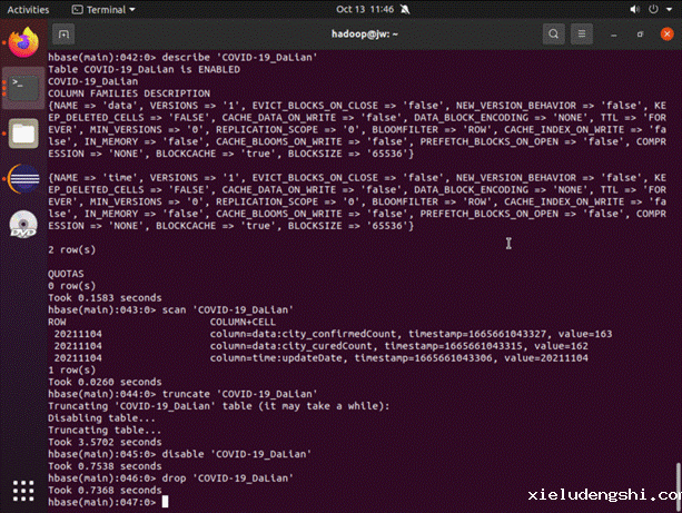 HBase shell演示:启动Hadoop和HBase